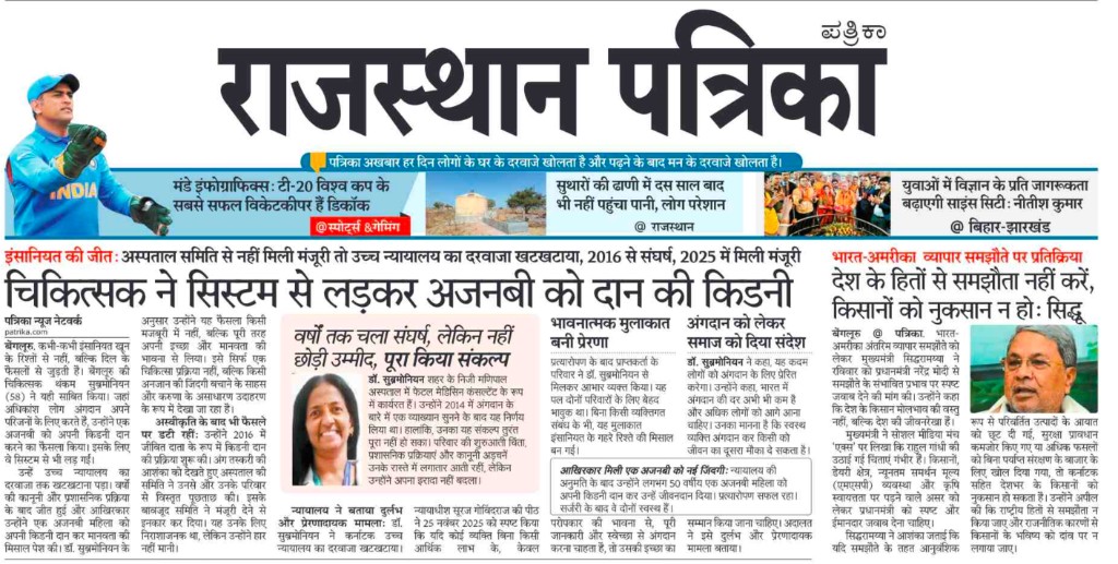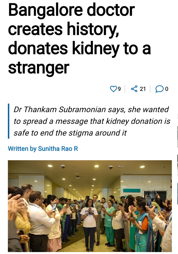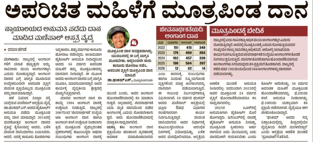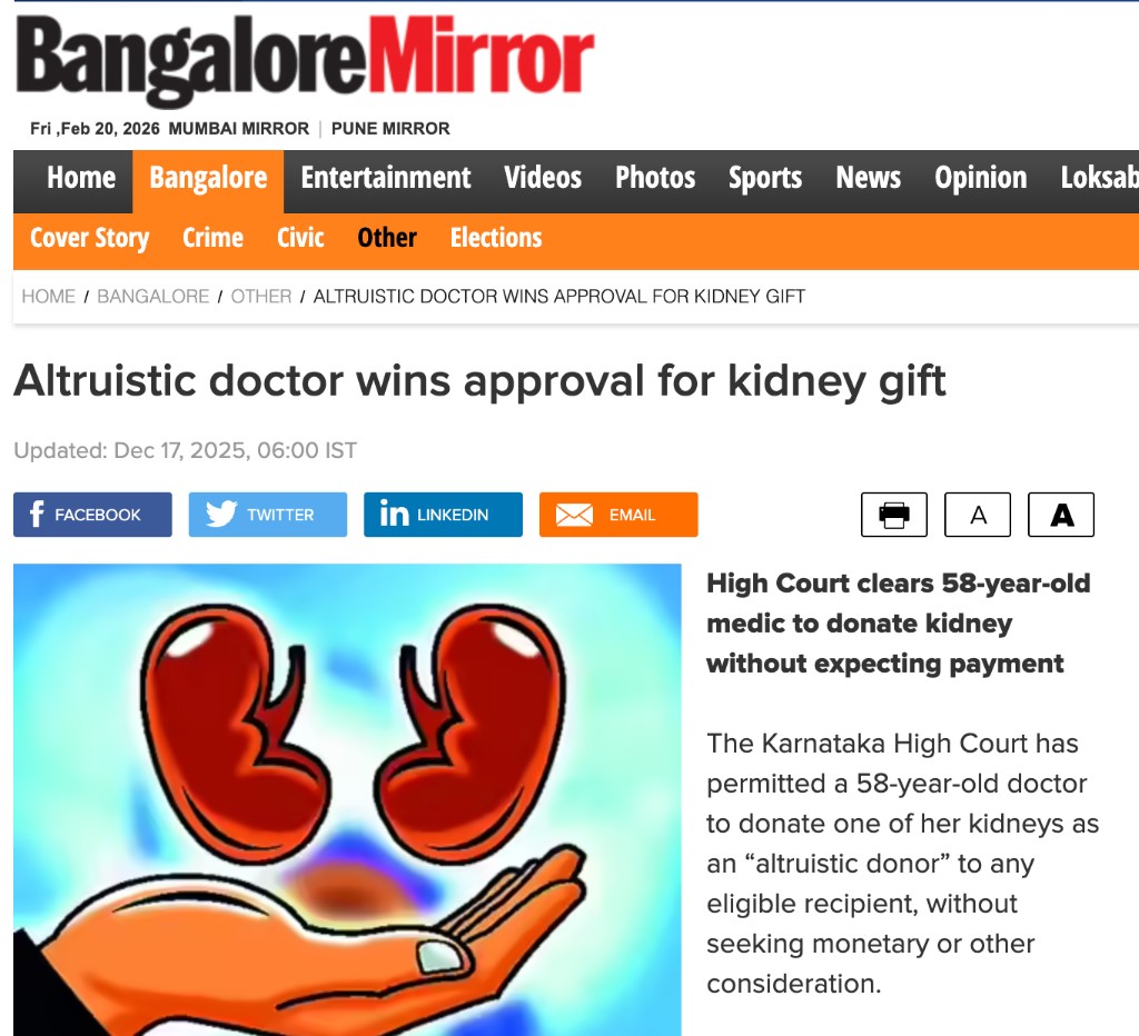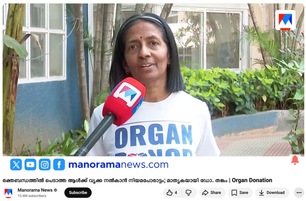 Legal battle to donate a kidney to a person not related by blood; Dr. Thankam becomes a model/example